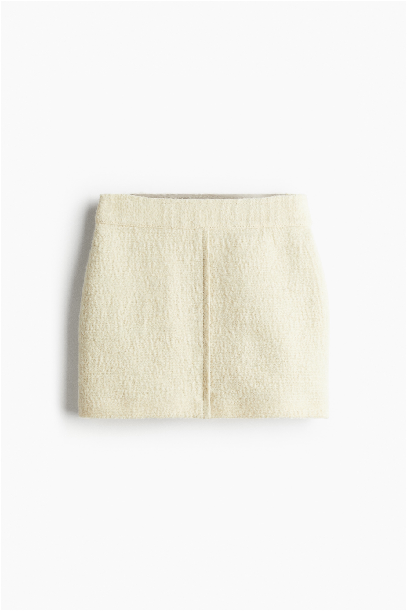 Коллекция Studio. Мини-юбка с фактурным переплетением из шерстяной смеси с видимым швом спереди и сзади. Гладкий необработанный пояс со скрытой застежкой на молнию и крючок с ушком с одной стороны. Подкладка из вискозы.