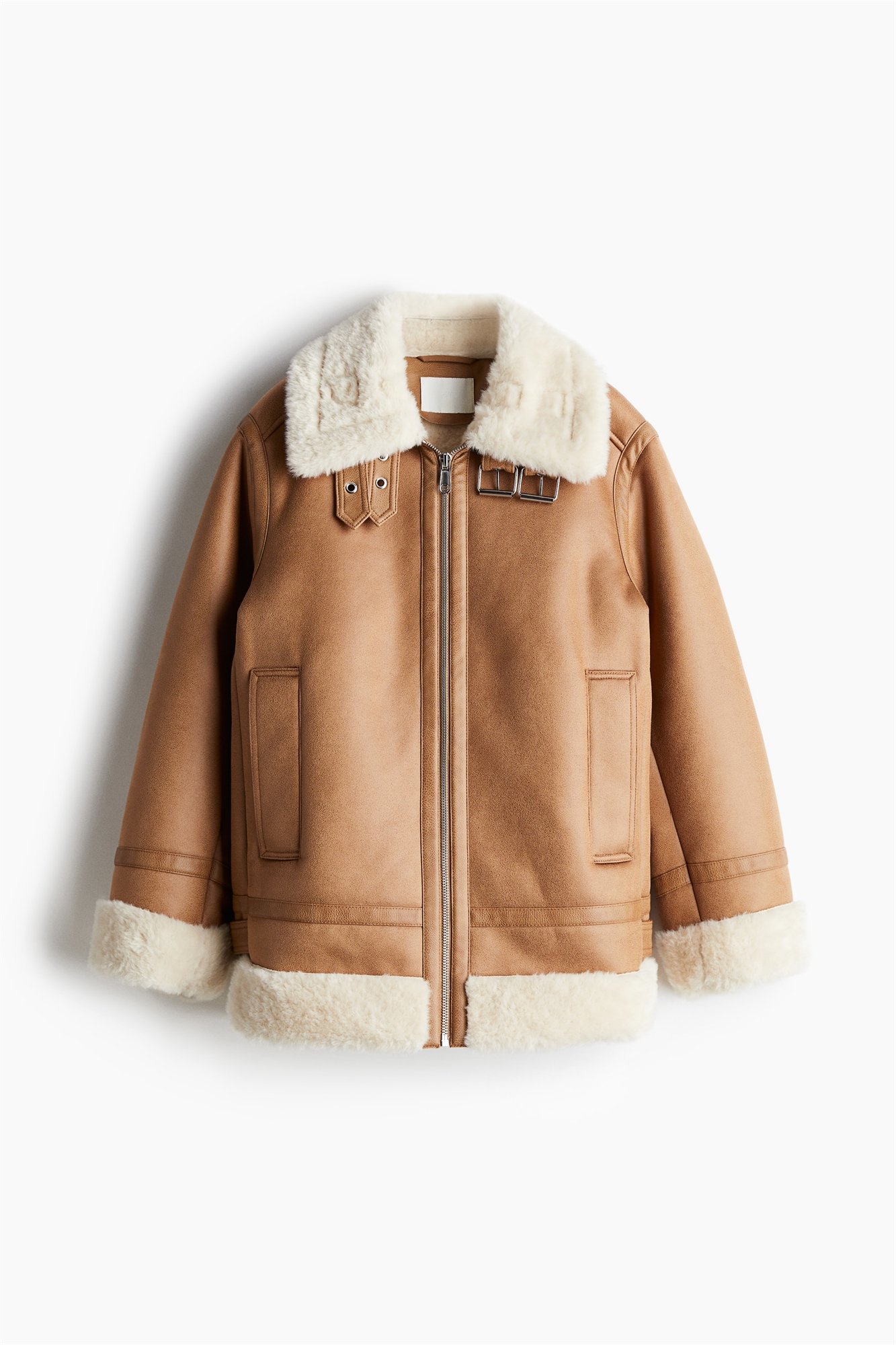 Куртка свободного покроя из ткани с покрытием и мягкой пушистой подкладкой. Воротник с двойной застежкой, застежка-молния спереди, слегка спущенные плечи и втачные боковые карманы. Регулируемая застежка с металлической пряжкой с каждой стороны подола.