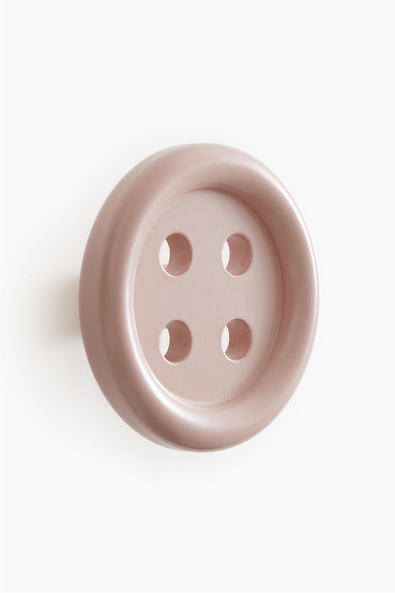Крючок в форме пуговицы из дерева и лакированного металла. Встроенный винт для подвешивания входит в комплект. Глубина 5,4 см. Диаметр 12 см.