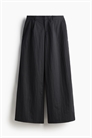 Свободные брюки из крепа с ширинкой на молнии, застежкой на крючок и планкой, складками спереди. Диагональные боковые карманы, фальшивые карманы с клапанами сзади и широкие ноги.