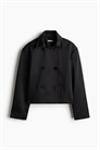 Короткий жакет большого размера из тканого материала с воротником и двубортной застежкой на пуговицы. Незаметные карманы в боковых швах и слегка опущенные плечи. На подкладке.