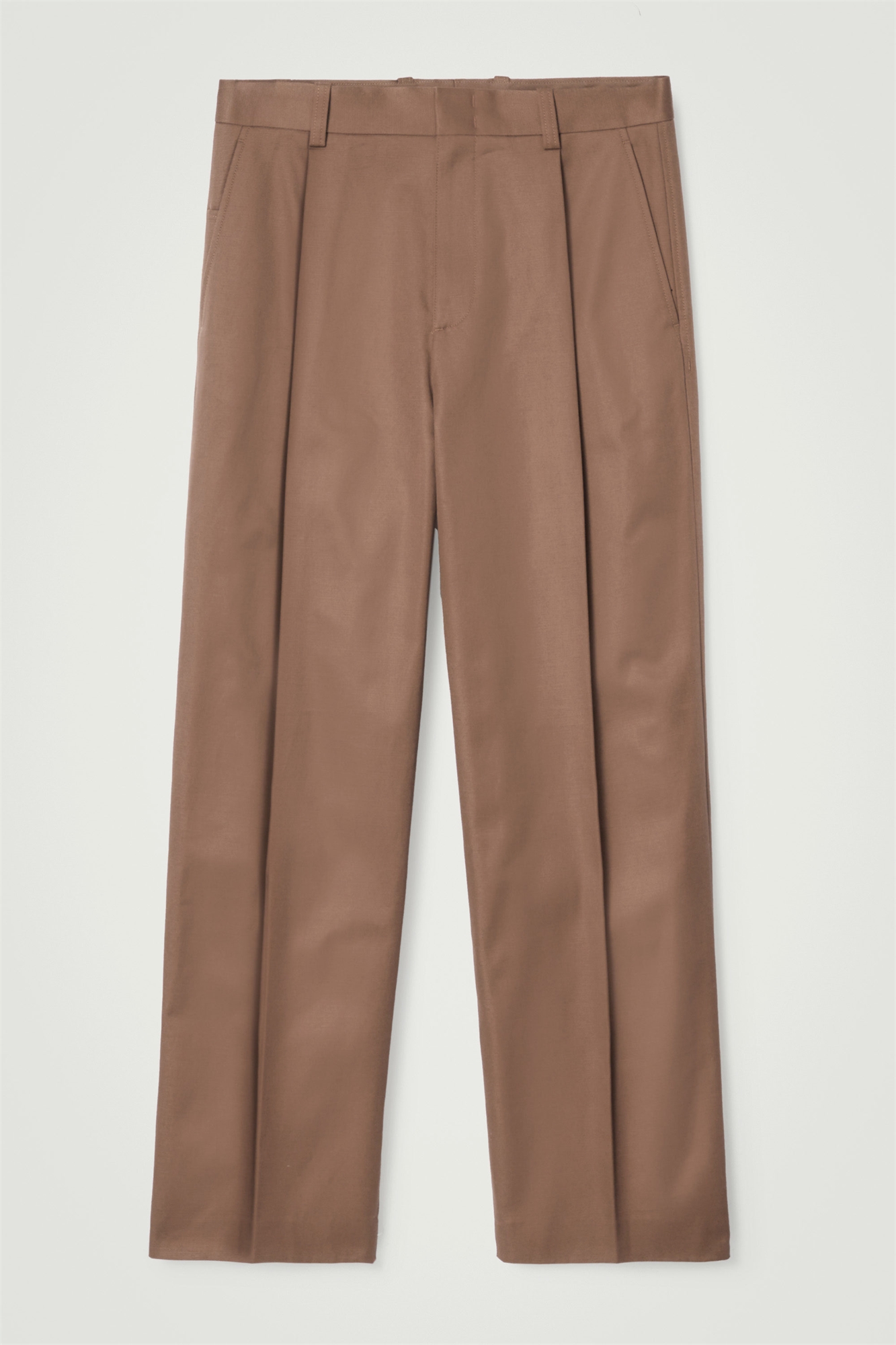 Эти шоколадно-коричневые брюки в непринужденном стиле сшиты из фактурной хлопковой саржи. Они имеют широкую штанину, характерные складки спереди и несколько карманов. Свободный крой Застежка на крючок и планку, застежка на молнию Внешняя ткань и подкладка: 100% хлопок. Детали не учитываются/Машинная стирка Внутренняя длина штанины в размере 48 = 76,8 см/Модель носит размер 48