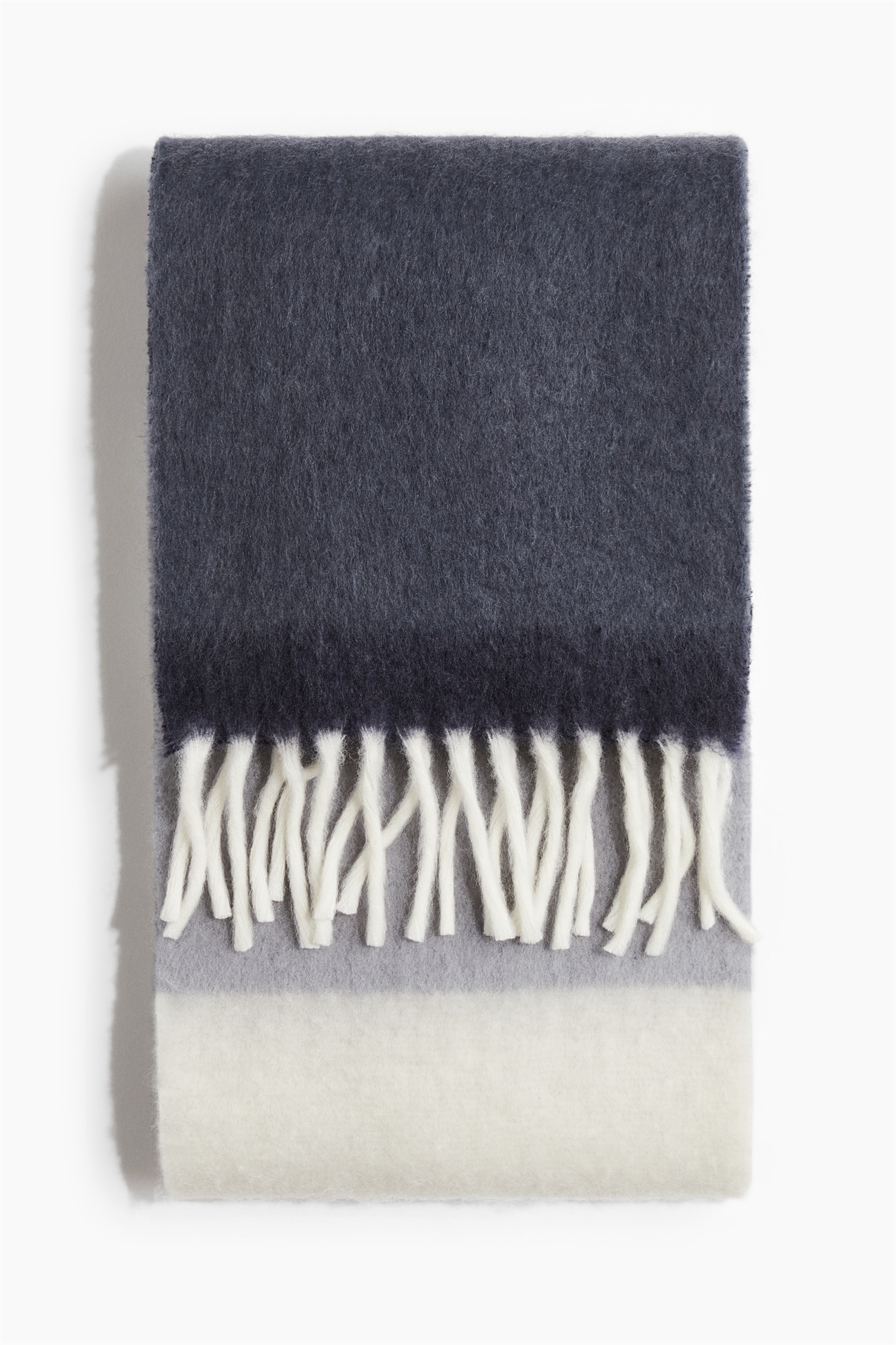Шарф мягкого плетения с матовой отделкой и бахромой по коротким сторонам.
