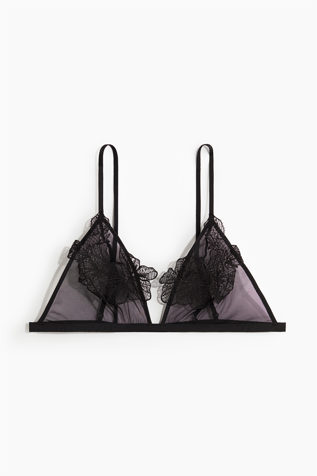 Мягкий бюстгальтер без проводов из прозрачной сетки с нежной вышивкой. Регулируемые бретели и чашечки без подкладки придают бюсту естественную форму и обеспечивают легкую поддержку. Узкая окантовка по подолу и регулируемая застежка-крючок сзади.
