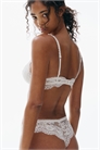 Кружевные трусы с заниженной V-образной талией, ластовицей и высоким разрезом сзади.