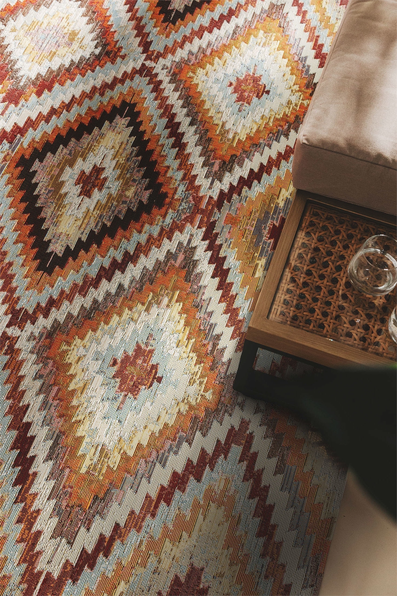 Ковер Artis для дома и улицы изготовлен машинным способом из 76% полипропилена, 23% полиэстера, 1% латекса. Этот предмет от бренда benuta Nest имеет разноцветный цвет и следующую структуру: Абстракция, Зигзаг. Размеры изделия: 120x180 см.