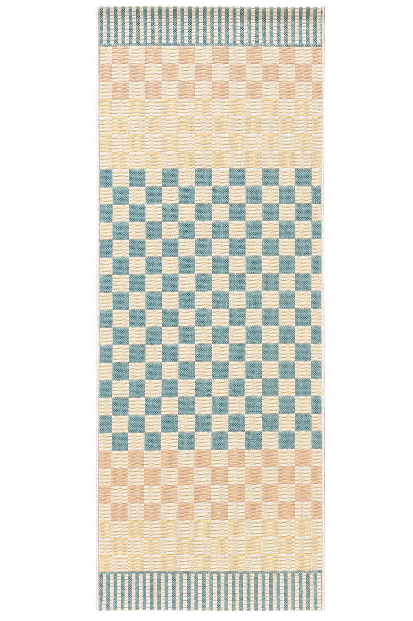 Ковер Candy для помещений и улицы изготовлен машинным способом из 100% полипропилена. Этот товар от бренда benuta Pop имеет разноцветный цвет и следующую структуру: Геометрический, Trend Look. Размеры изделия: 80x200 см.