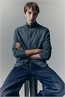 Кардиган из мягкого тонкого трикотажа с воротником-стойкой, двусторонней застежкой-молнией спереди и длинными рукавами. Тонкая тесьма вокруг воротника, на манжетах и подоле. Зауженный крой, облегающий контуры тела и создающий приталенный силуэт.