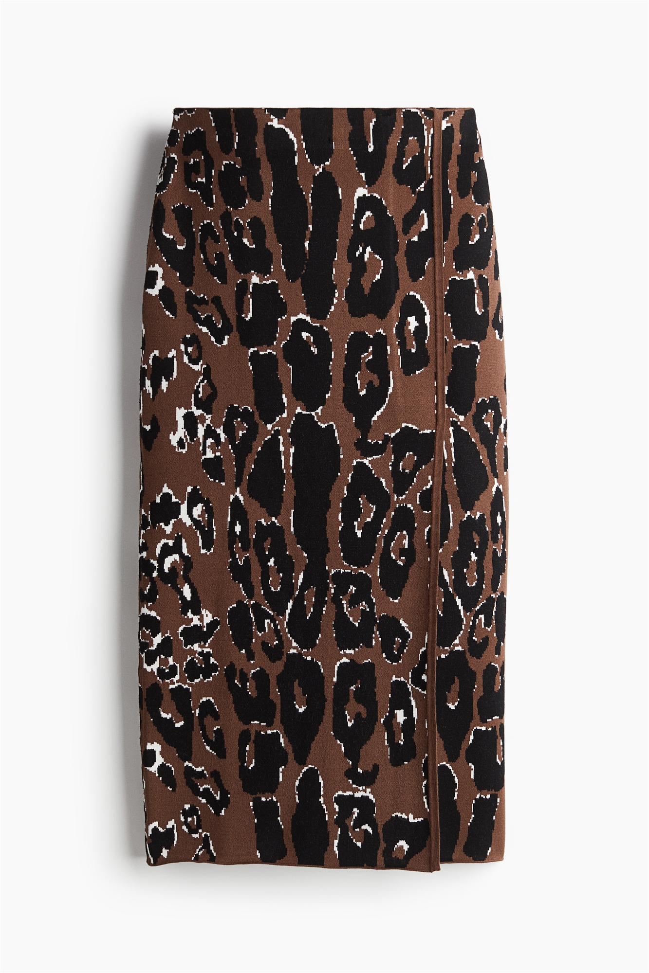 Юбка длиной до щиколоток из мягкого тонкого трикотажа с высокой талией и прямым подолом с разрезом спереди.