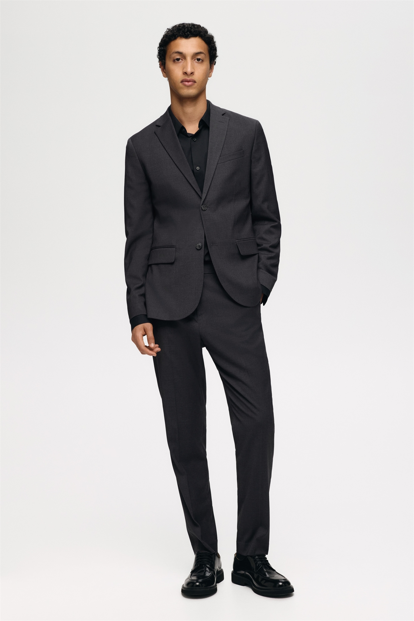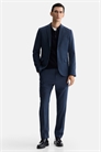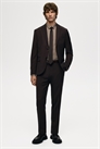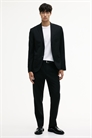 Костюмные брюки из тканого материала с ширинкой на молнии и потайной застежкой на крючок и планку, боковыми карманами, втачными задними карманами и ногами со складками. Зауженный крой, облегающий контуры тела и создающий приталенный силуэт.