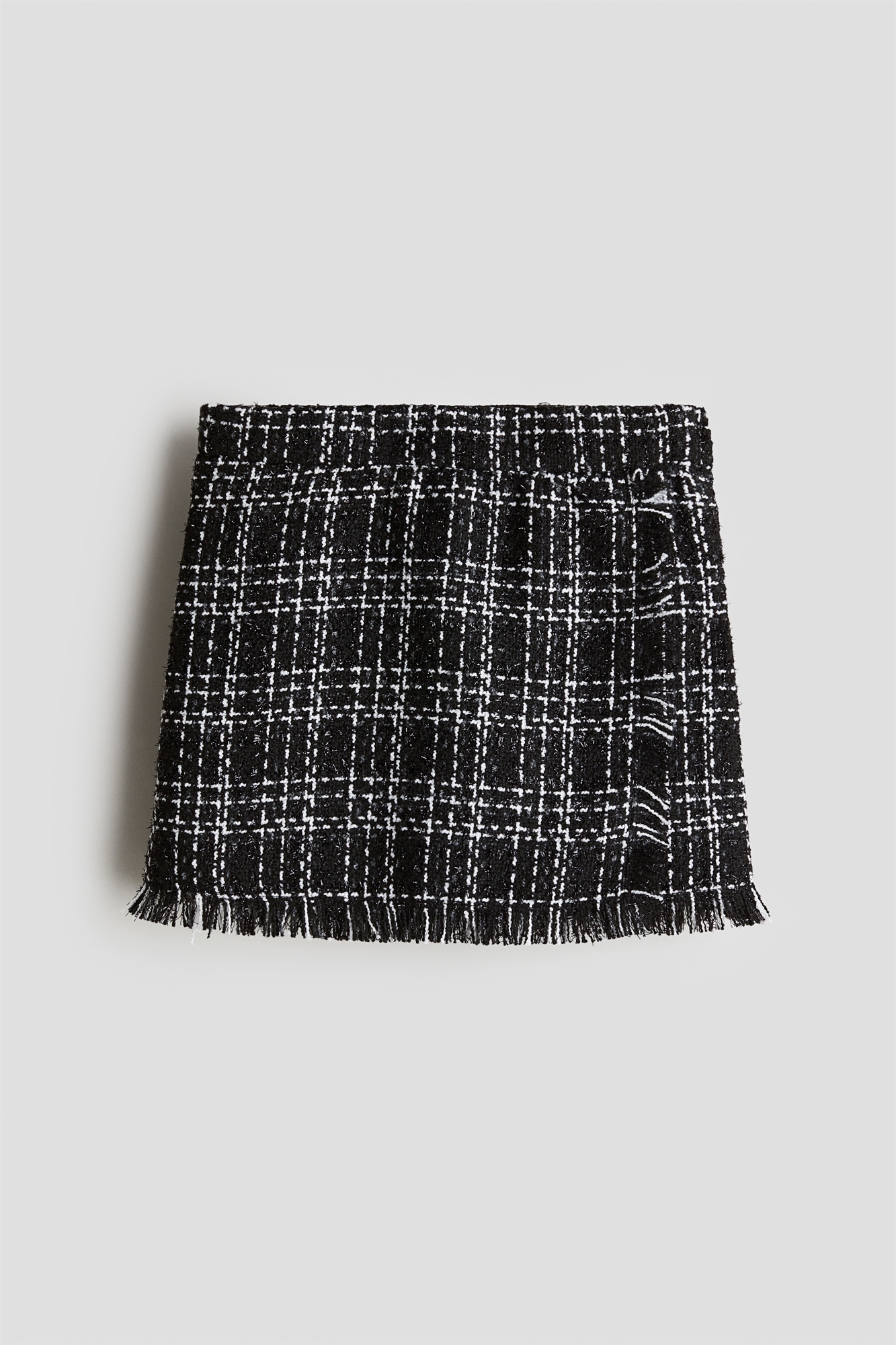 Юбка из мягкого плетения с завязками спереди. Регулируемая эластичная талия и потайная застежка на молнию и пуговицу с одной стороны. На подкладке.