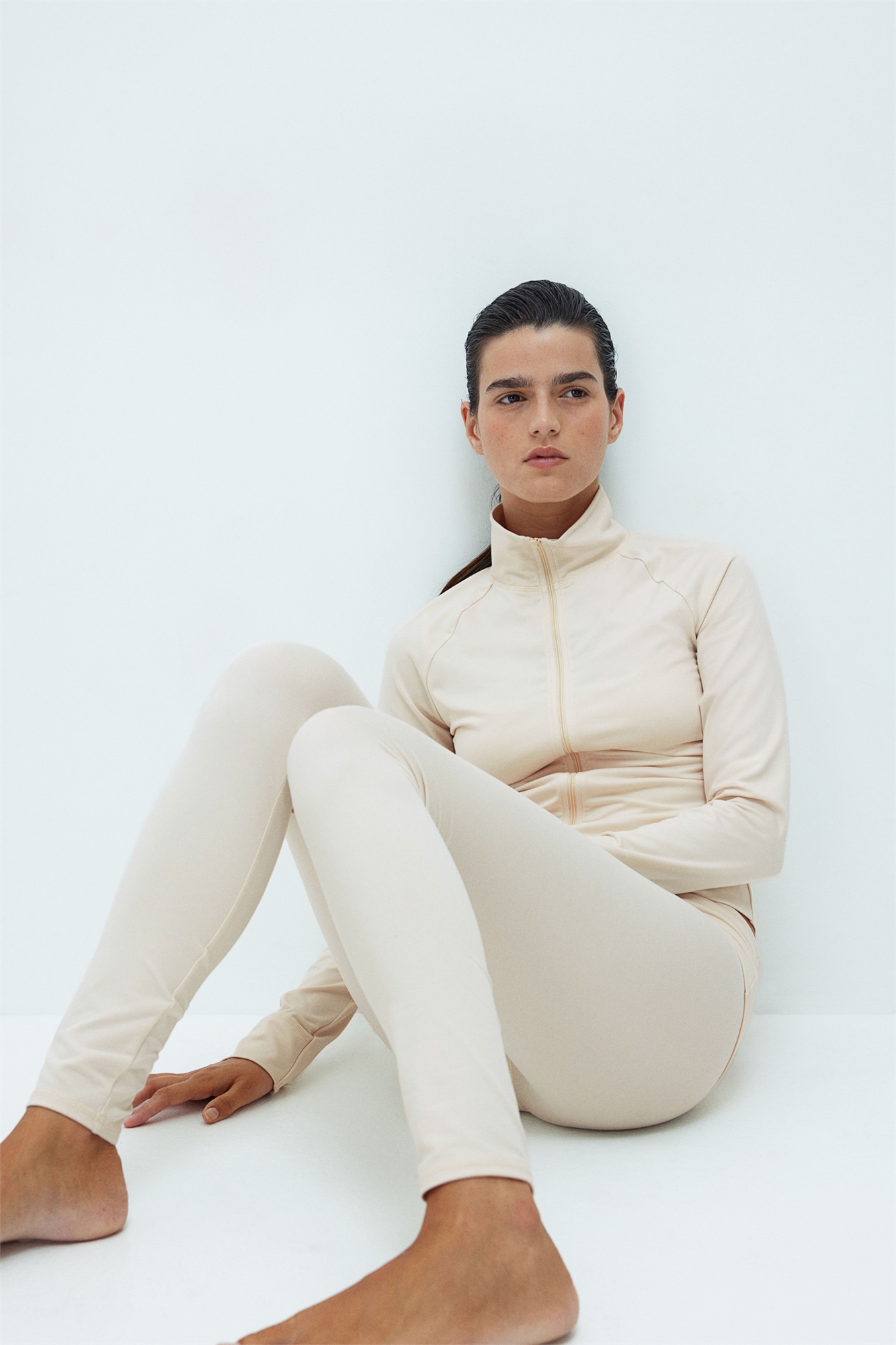 Леггинсы из джерси с мягкой матовой поверхностью и швами flatlock против натирания. Высокая талия с широким поясом.