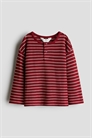 Топ из фактурного хлопкового джерси с круглым вырезом в рубчик, застежкой на пуговицы, спущенными плечами и длинными рукавами.