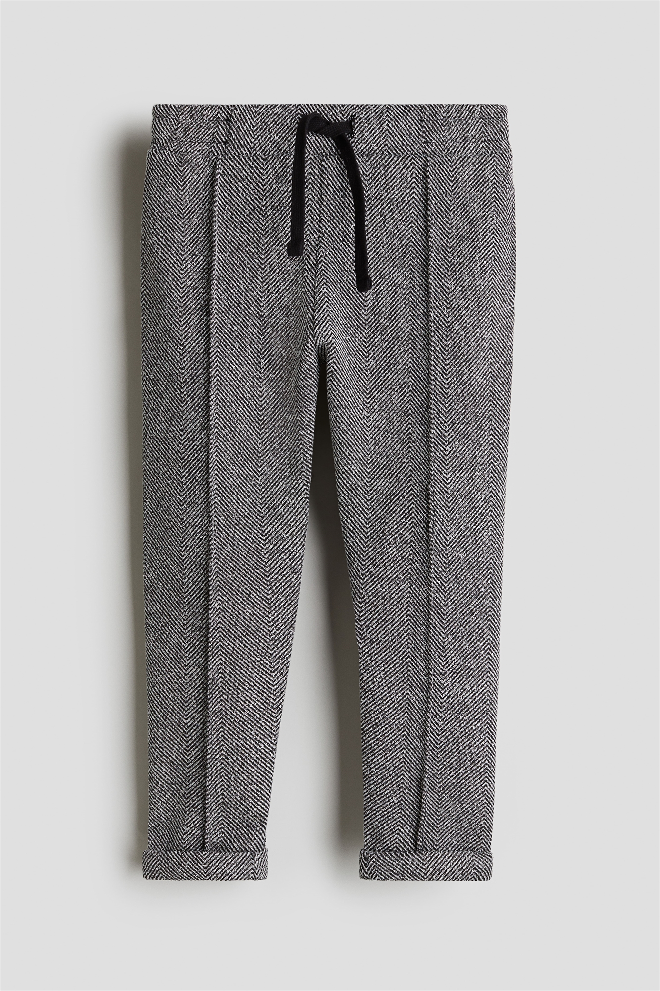 Нарядные джоггеры из прочного трикотажа с эластичным поясом на завязках, неброскими боковыми карманами и пинетками по ногам.