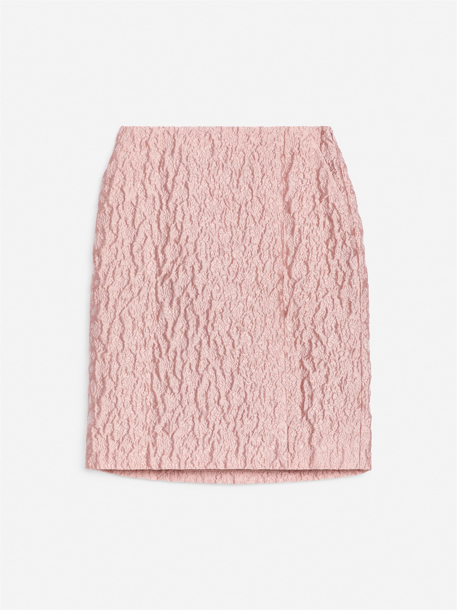 Юбка из парчового переплетения с разрезом спереди, боковыми карманами и потайной молнией сбоку. Обычный крой.