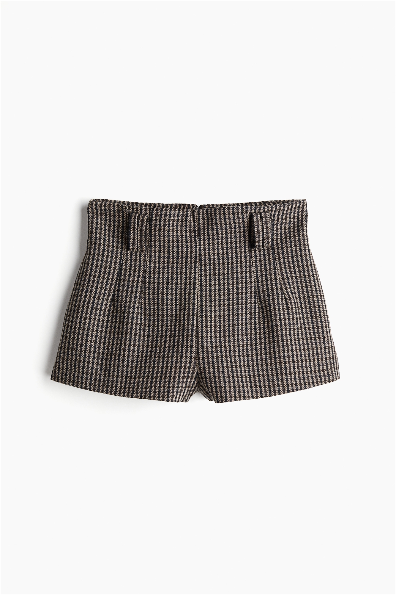 Мини-шорты из саржи с завышенной талией, петлями для ремня, потайной застежкой на молнию сзади, незаметными боковыми карманами и накладным задним карманом на пуговице. На подкладке.