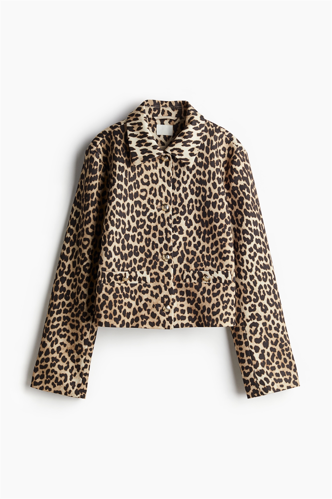 Короткий жакет с воротником, слегка спущенными плечами, длинными рукавами и втачными карманами спереди. На подкладке.