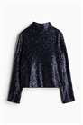Топ с длинными рукавами из блестящей сетки, водолазка с горловиной и потайной застежкой-молнией сзади. Подкладка из джерси.