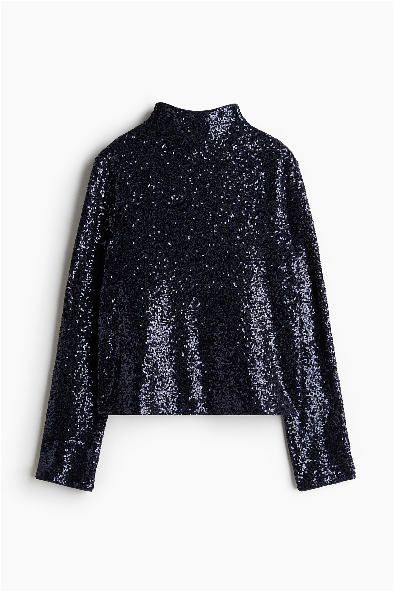 Топ с длинными рукавами из блестящей сетки, водолазка с горловиной и потайной застежкой-молнией сзади. Подкладка из джерси.