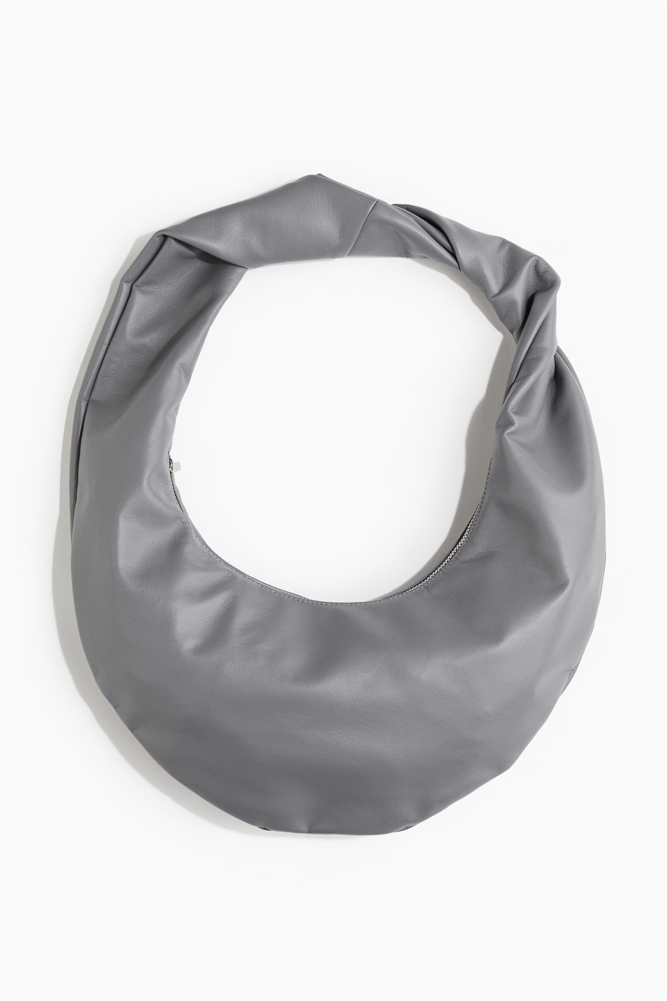 Сумка через плечо из лакированной ткани с застежкой на молнию сверху и перекрученным плечевым ремнем. Подкладка из тафты. Глубина 20 см. Высота 20 см. Ширина 40 см.