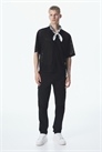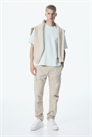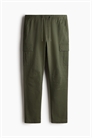 Брюки из хлопчатобумажной ткани с эластичной отделкой и утягивающим шнурком на талии, фальшивая ширинка, диагональные боковые карманы и накладные задние и ножные карманы со скрытыми кнопками. Зауженные ноги со швами и вытачками на коленях. Зауженный крой, облегающий контуры тела и создающий приталенный силуэт.