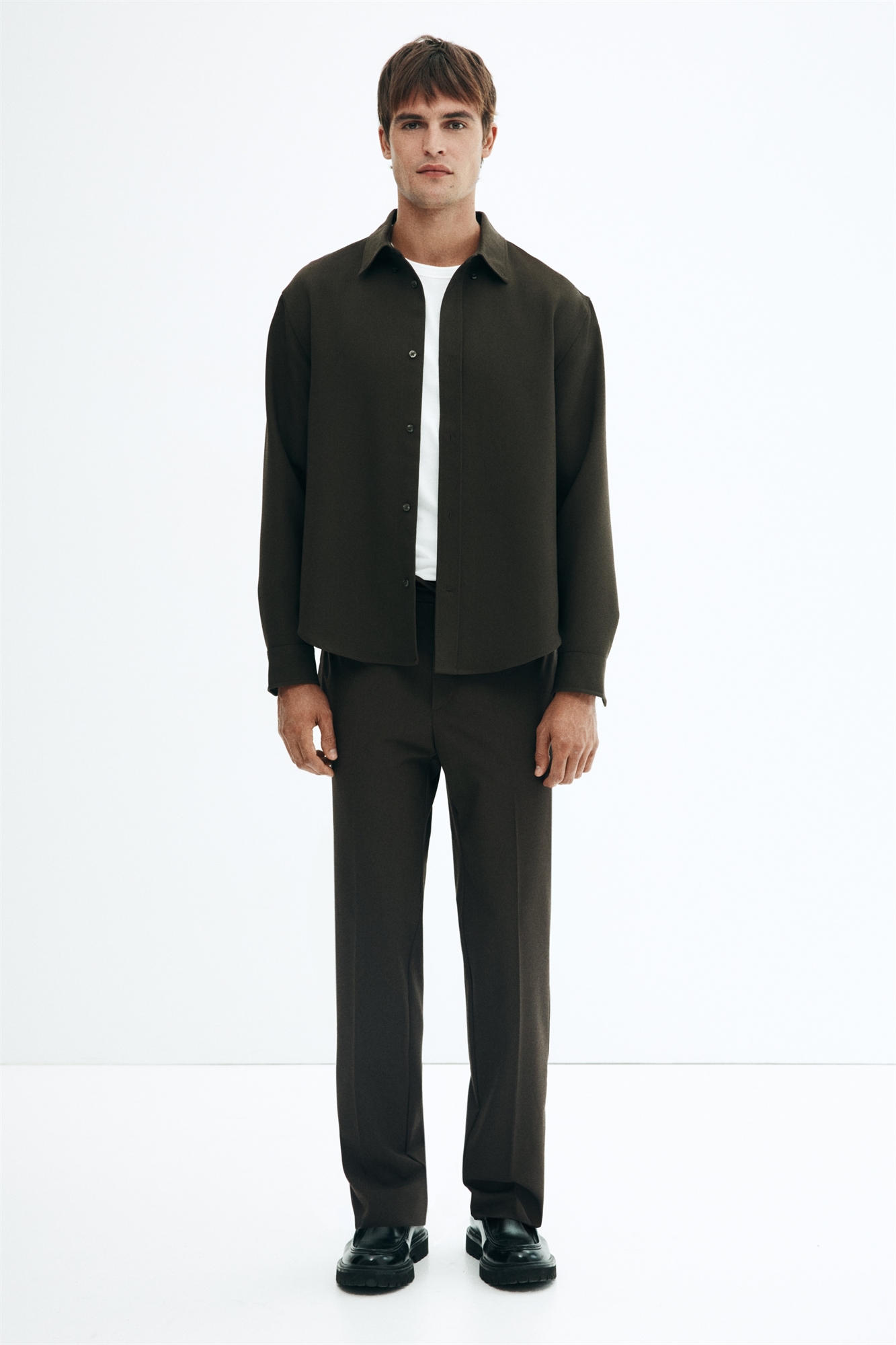 Приталенные джоггеры из тканого материала с эластичной отделкой и утягивающим шнурком на талии. Фальшивая ширинка, боковые карманы, втачные задние карманы и складки спереди и сзади. Зауженный крой, облегающий контуры тела и создающий приталенный силуэт.