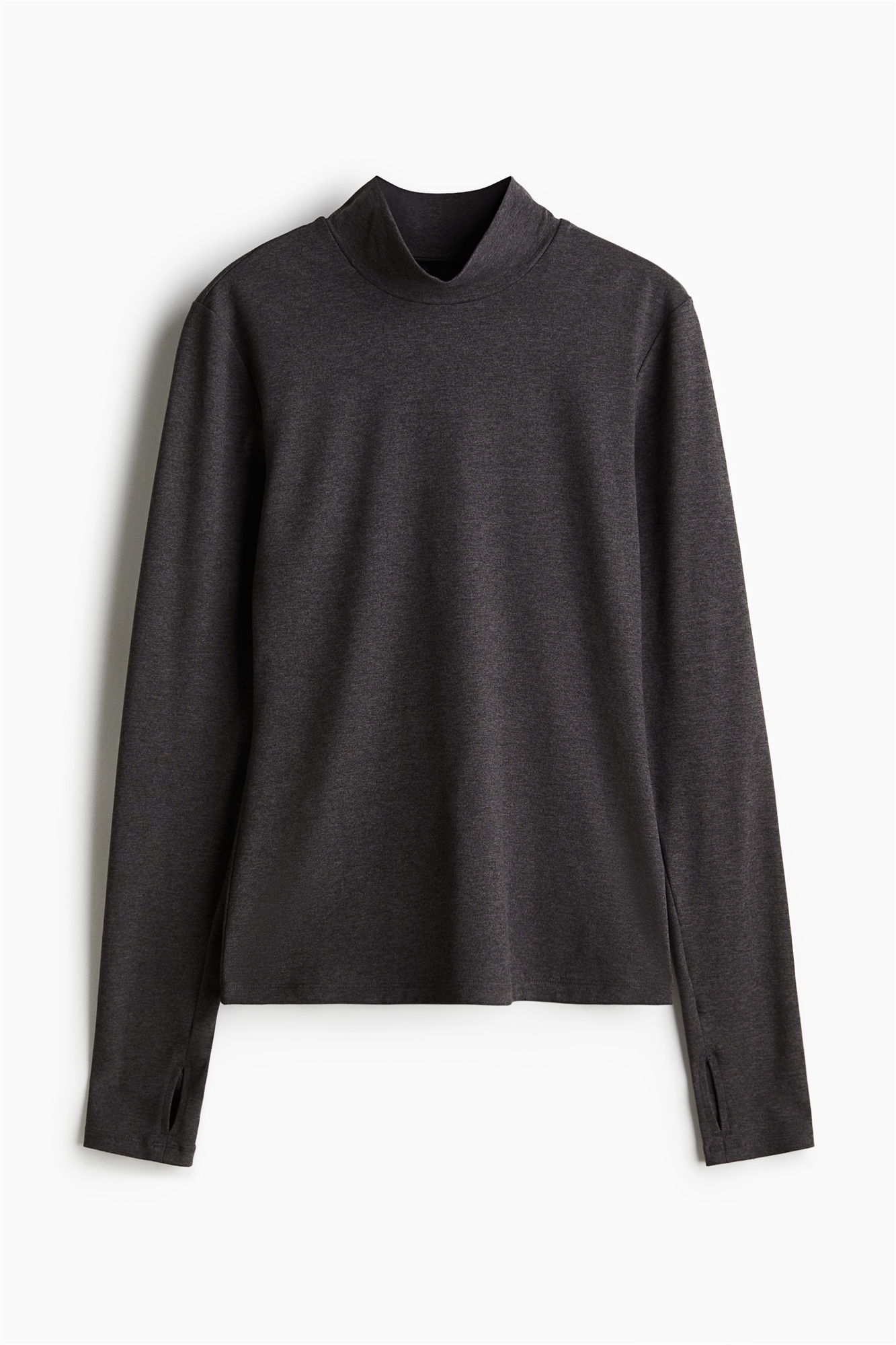 Спортивный топ из функциональной ткани DryMove™, которая отводит влагу от кожи, обеспечивая комфортную сухость во время движения. Облегающий крой с черепаховой горловиной и удлиненными рукавами с отверстиями для больших пальцев.