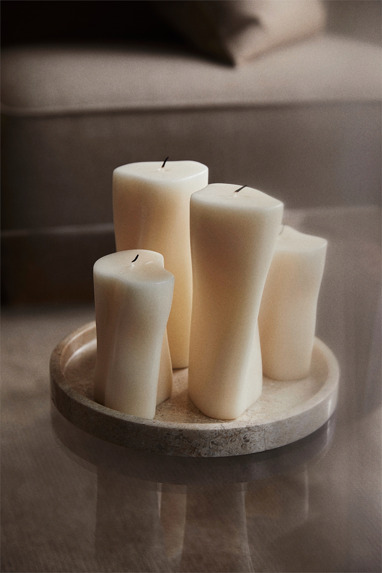 Свеча-таблетка уникальной асимметричной формы. Приблизительная ширина 8 см. Высота 12,5 см.