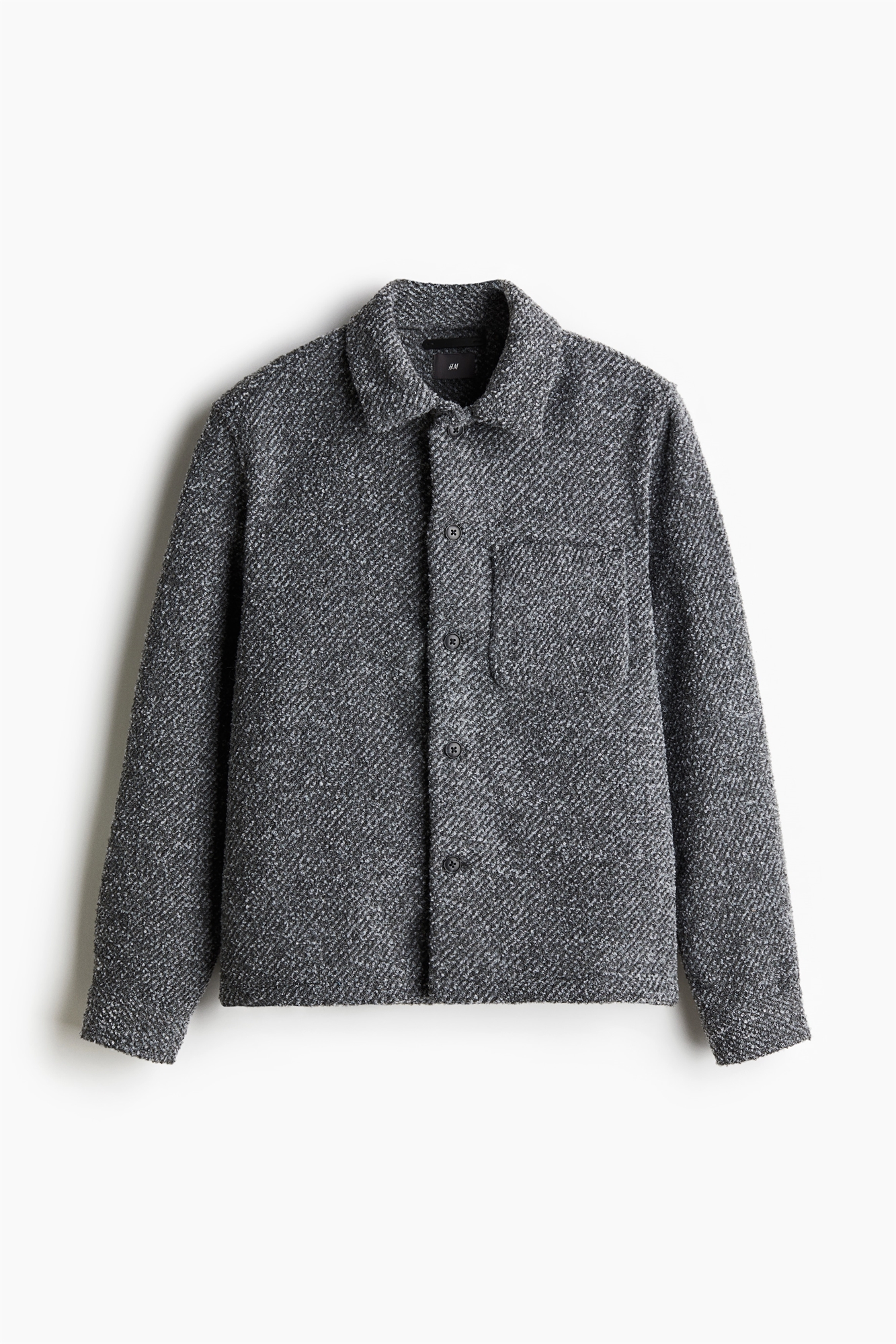 Оверсайз из саржи с отложным воротником, пуговицами спереди и на манжетах, а также передним карманом.