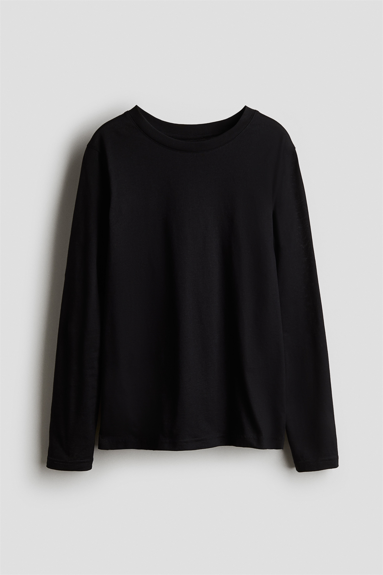 Футболка с длинными рукавами из мягкого хлопкового джерси, круглым вырезом с ребристой отделкой и спущенными плечами.