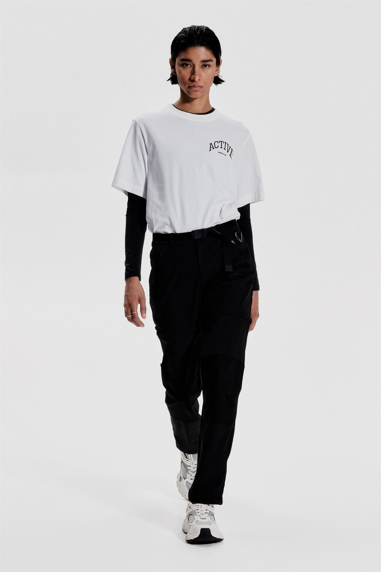 Брюки для походов Regular-Fit из эластичного функционального нейлона с водоотталкивающей пропиткой, которые не дадут вам промокнуть во время небольшого ливня. Регулярная талия с ширинкой на молнии, потайной кнопкой и регулируемым поясом с пряжкой. Диагональные передние карманы на молнии и накладной карман на молнии на одной штанине. Аккуратные сужающиеся штанины с усилением в области колена и эластичным шнурком на подоле. Потайная молния над коленом превращает брюки в шорты.