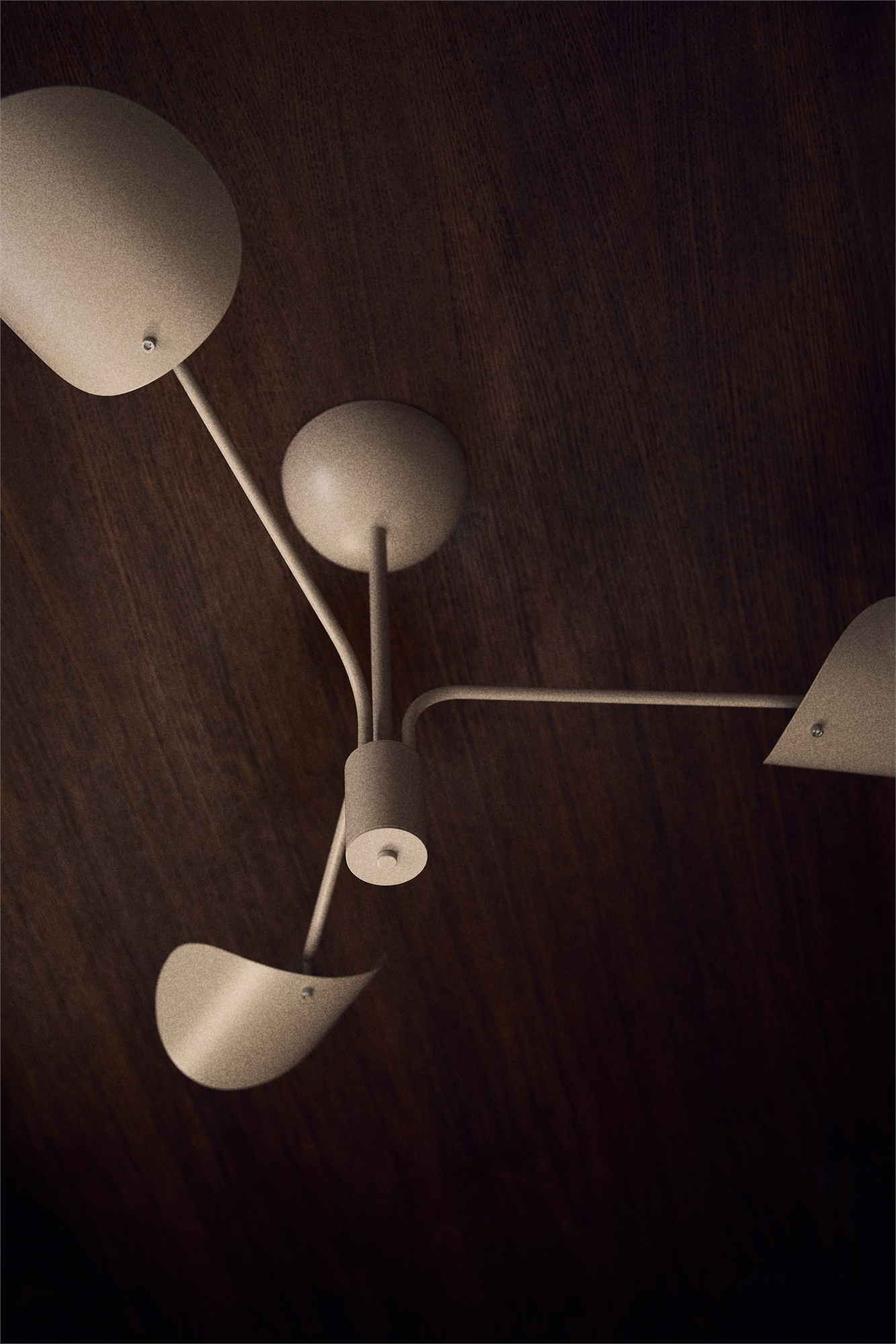 Потолочный светильник, вдохновленный природой в современном исполнении. Три ветви, каждая из которых заканчивается абажуром в виде листа, красиво рассеивающим свет. Держатели лампочек E14. Лампочки в комплект не входят. Максимальная мощность 6 Вт. Приблизительная высота 45 см. Приблизительная длина одной ветви 61,5 см. Длина шнура 2 м.