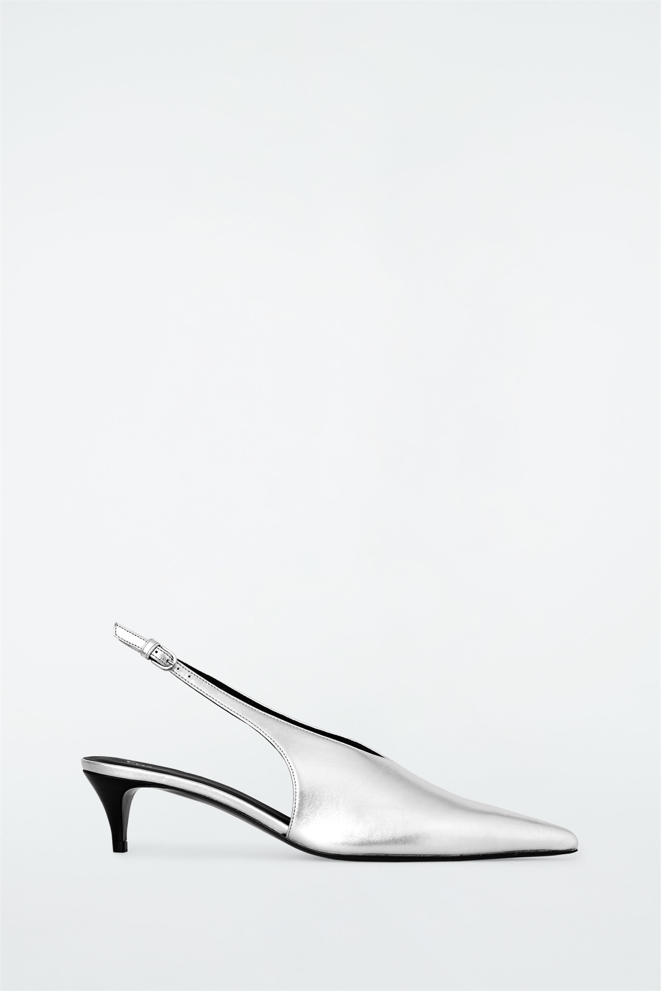 Эти серебристо-металлические туфли на каблуке станут изысканным завершающим штрихом вечернего образа. Созданные из первоклассной мягкой кожи, они имеют заостренный силуэт, зеркально отраженный на V-образном мыске, и регулируемый ремешок на спине. Застежка на пряжке COS поддерживает ответственное производство через Leather Working Group Верх и подкладка: 100% кожа. Подошва: 100% термопластичный полиуретан. Без учета отделки Высота каблука: 5 см