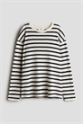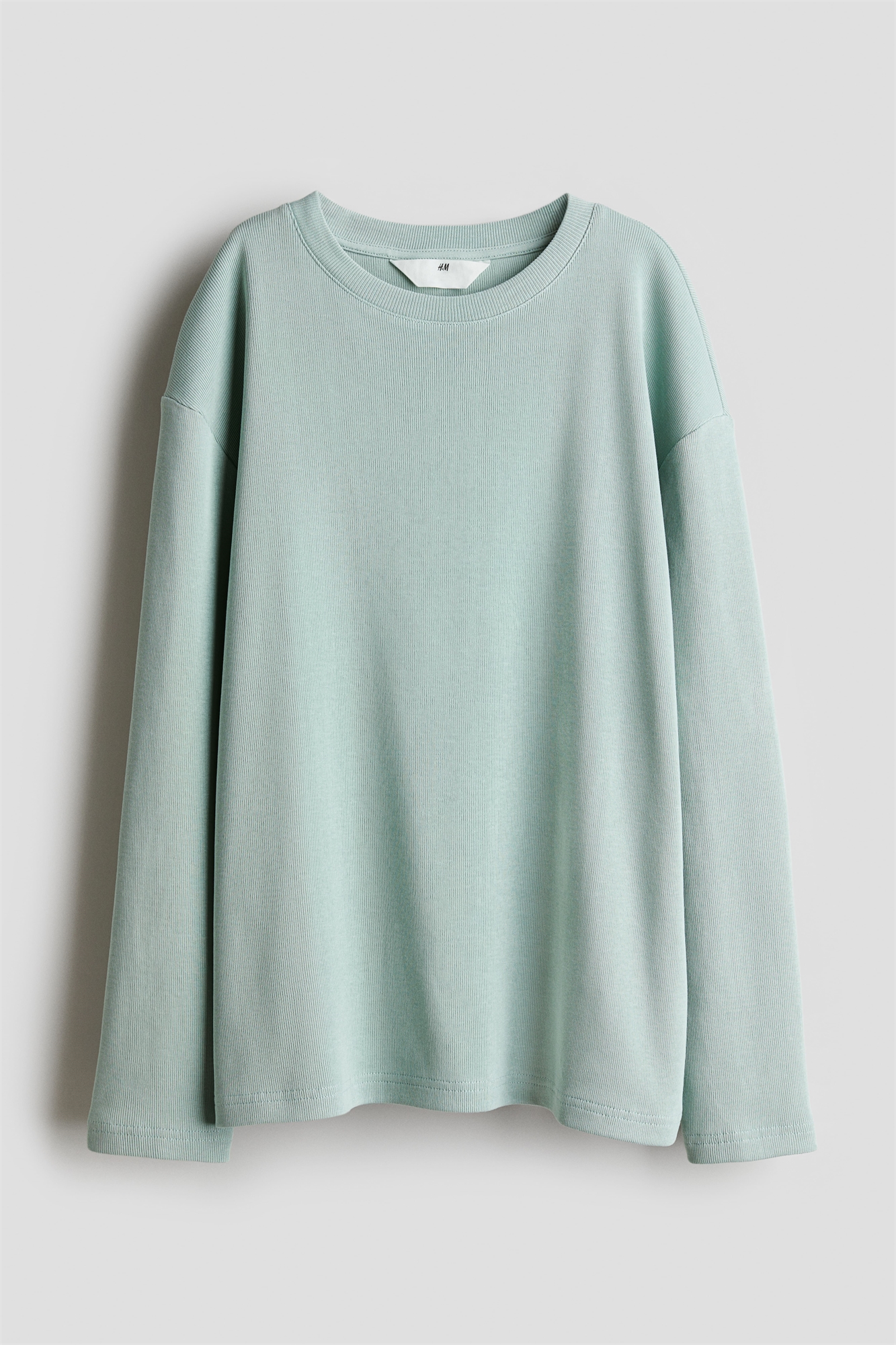 Свободная футболка из хлопкового джерси с круглым вырезом, отделанным ребрами, спущенными плечами и длинными рукавами.