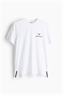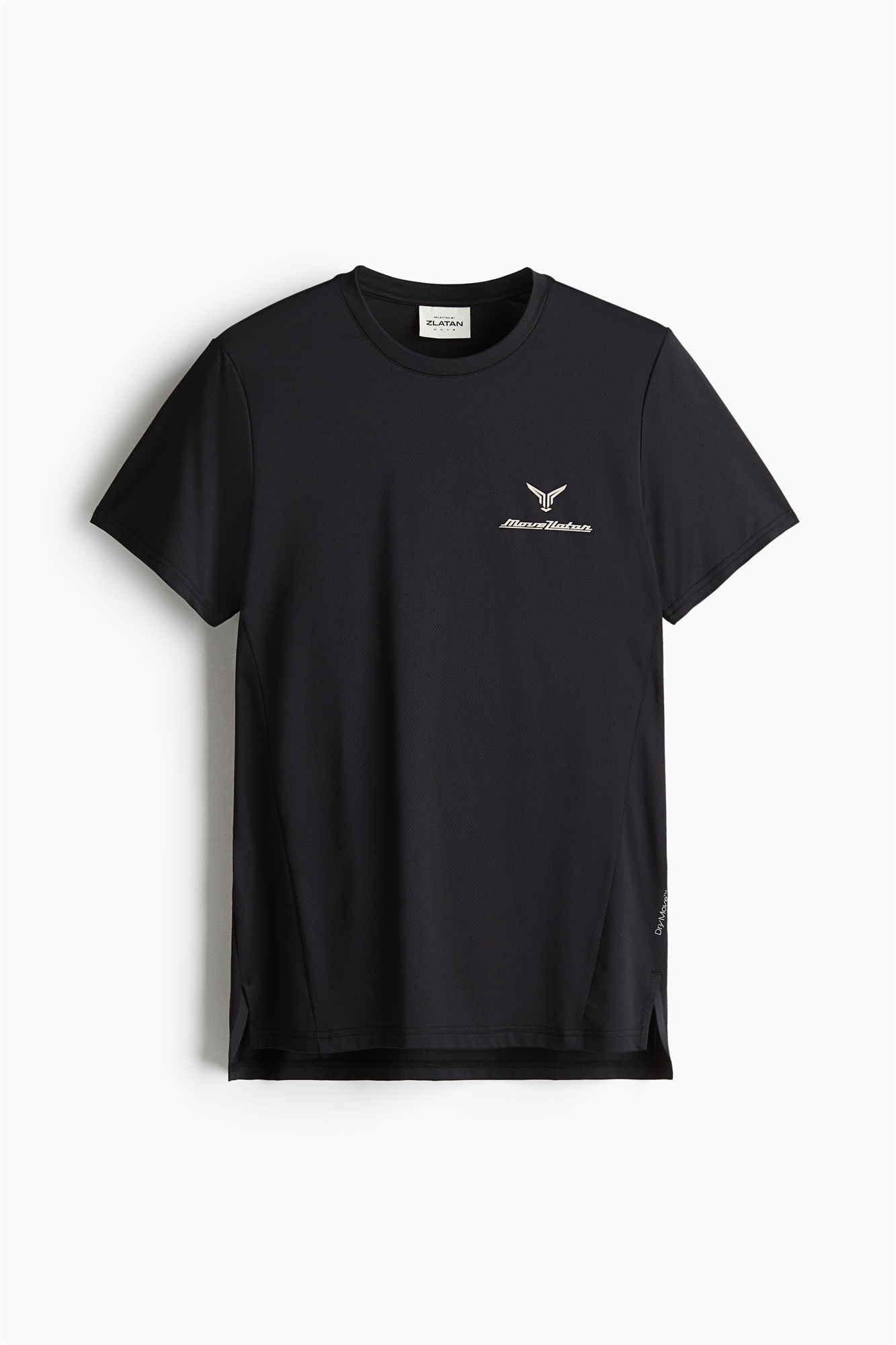 Спортивный топ из функциональной ткани DryMove™, которая отводит влагу от кожи, обеспечивая комфортную сухость во время движения. Модель обычного покроя с круглым вырезом, короткими рукавами и прямым подолом с разрезом с каждой стороны и слегка удлиненным сзади. Принт на груди и спине.