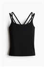 Спортивный топ на бретелях из функциональной ткани DryMove™, которая отводит влагу от кожи, обеспечивая комфортную сухость во время движения. Облегающий крой с вырезом-лодочкой, встроенным спортивным бюстгальтером и узкими двойными бретелями, перекрещивающимися на спине.
