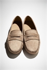 Мокасины из ворсистой ткани, с копеечным кипером и мокасиновым швом спереди. Подкладка из хлопкового канваса и подошва из гальки.