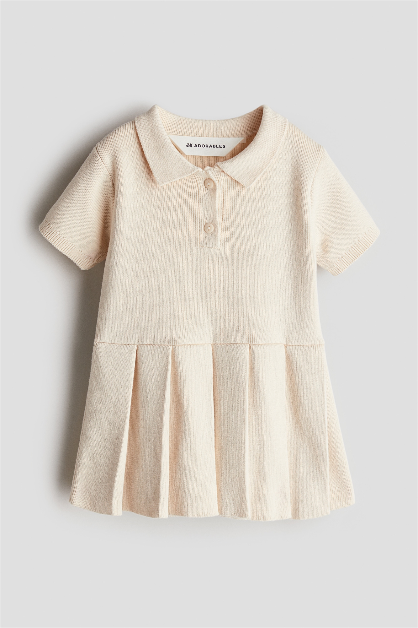 H&M Adorables. Платье из тонкого трикотажа из высококачественного хлопка, мягко прилегающего к коже. Воротник, застежка на пуговицах, короткие рукава с ребристыми манжетами и плиссированная юбка. Коллекция H&M Adorables - это подборка прекрасных, качественных вещей с вечной привлекательностью.