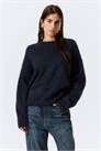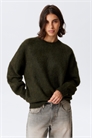 Вязаный свитер с длинными рукавами и большим размером, созданный из супермягкой смеси мохера. Этот мохнатый фаворит имеет круглый вырез и ребристые края.