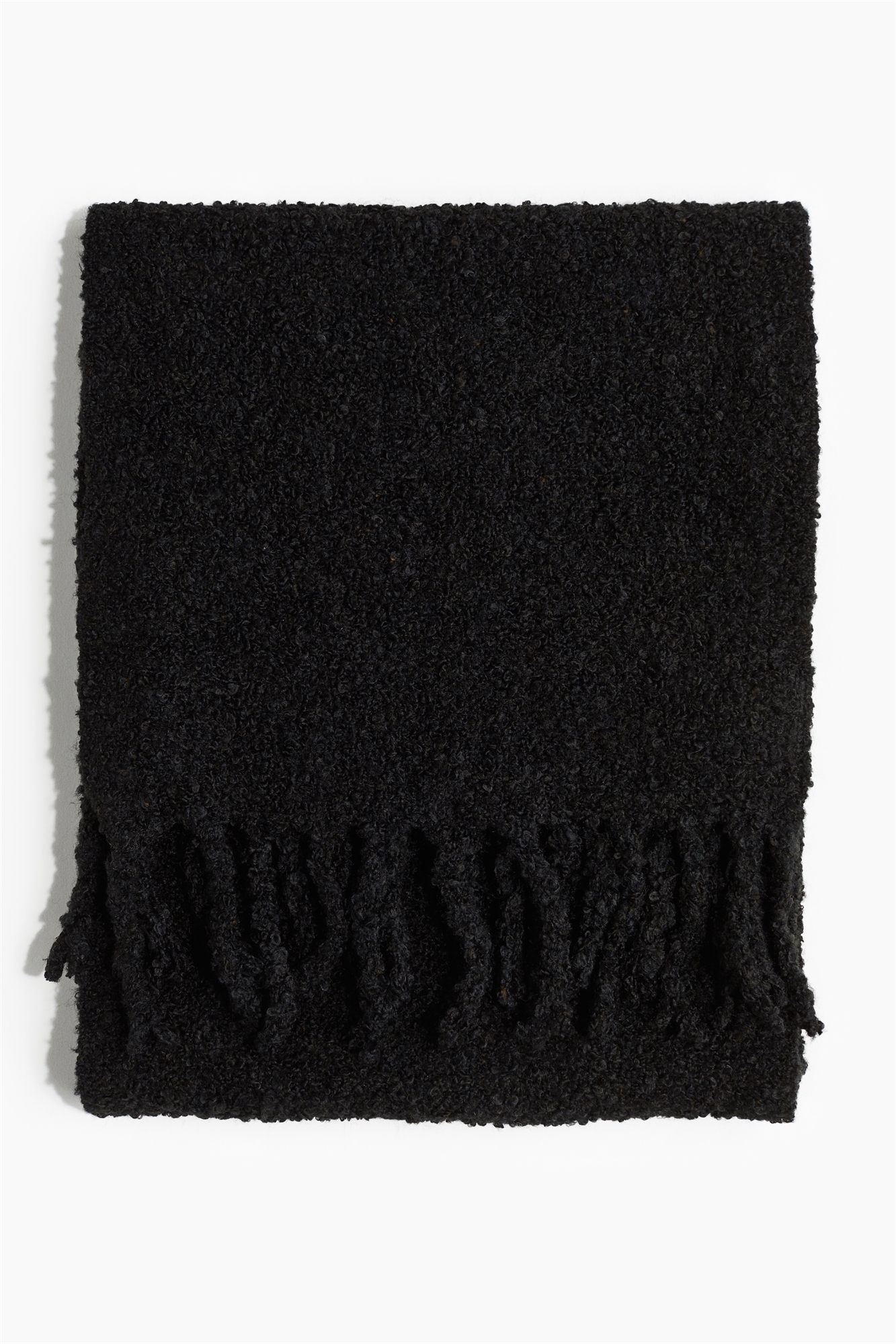 Шарф из мягкого трикотажа букли с добавлением шерсти и бахромой по коротким сторонам.