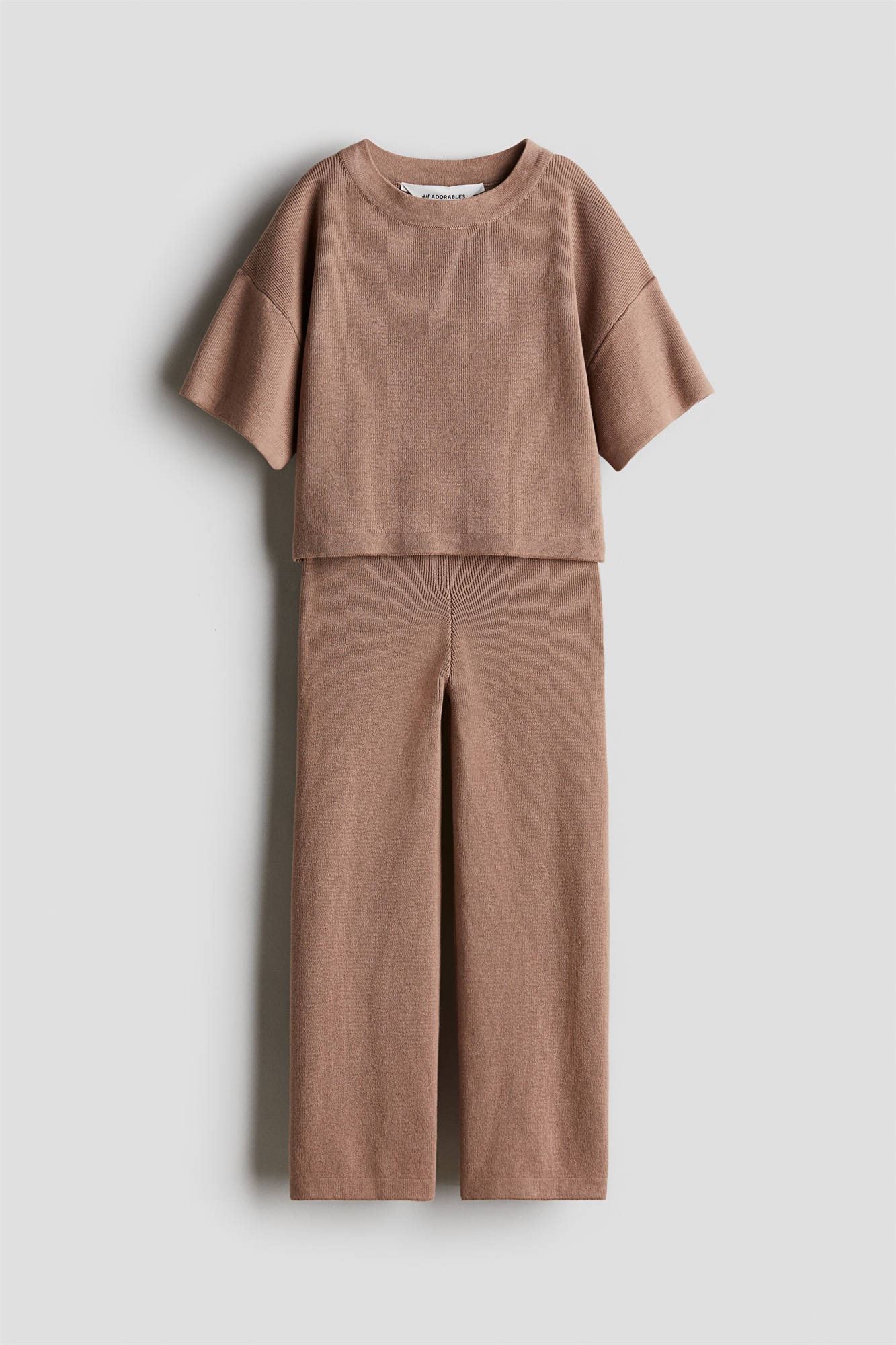 H&M Adorables. Уютный комплект из топа и брюк из мягкого тонкого трикотажа, изготовленного из высококачественного хлопка. Топ в боксерском стиле с круглым вырезом, низко опущенными плечами и короткими рукавами. Брюки с регулируемым эластичным поясом и прямыми ногами. Коллекция H&M Adorables - это подборка удобных и качественных вещей, не теряющих актуальности.