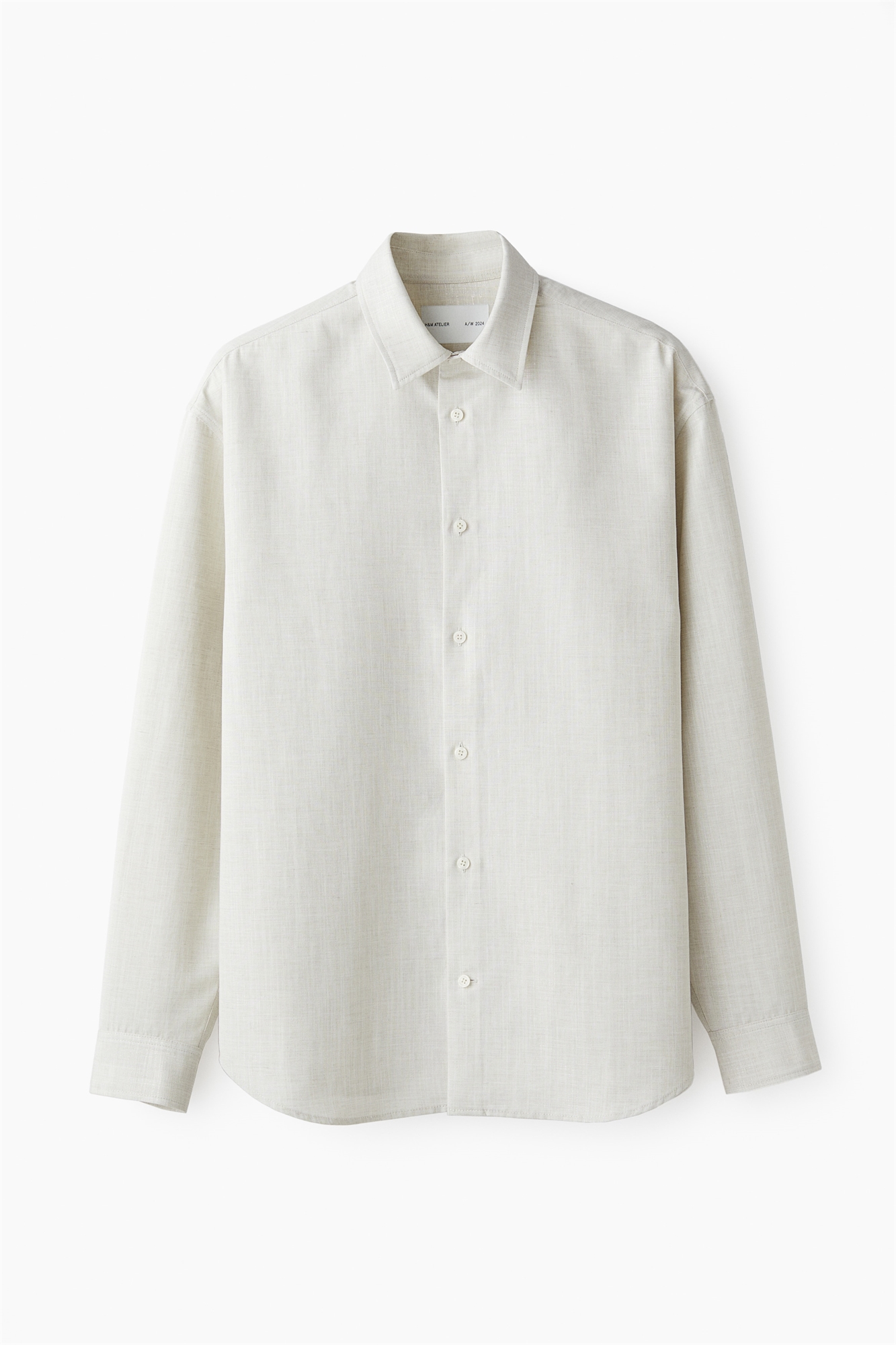 H&M Atelier. Рубашка свободного кроя из слегка мерцающего материала, полученного от итальянских производителей тканей Cangioli 1859. Отложной воротник, французский воротник спереди, передняя панель и закругленный подол. Длинные рукава с регулируемыми пуговицами на манжетах и рукавной планкой с пуговицей.