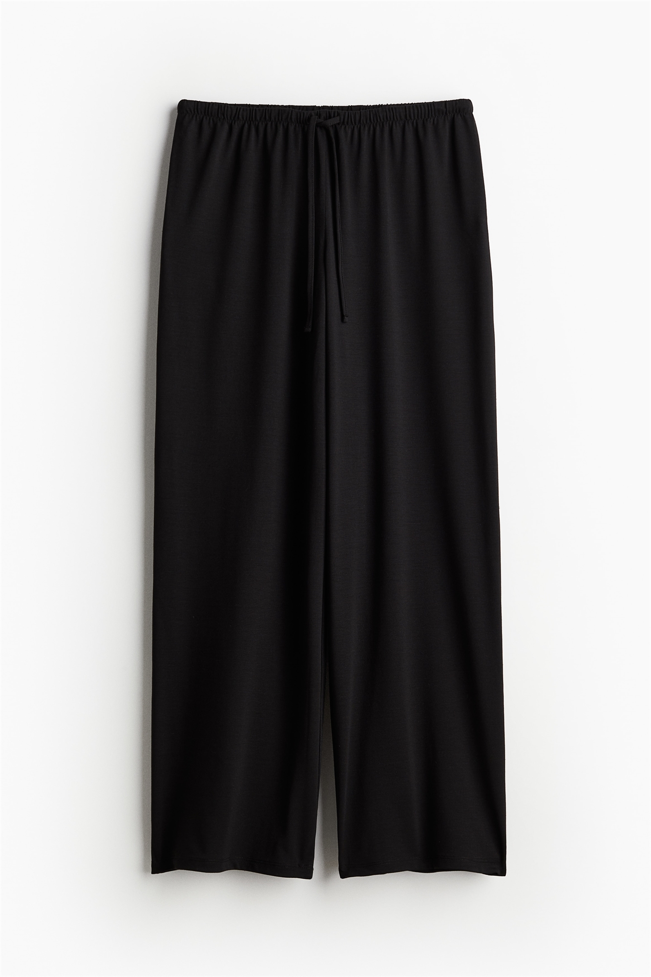 Свободные брюки из мягкого трикотажа с эластичной отделкой и утягивающим шнурком на талии. Широкие ноги.
