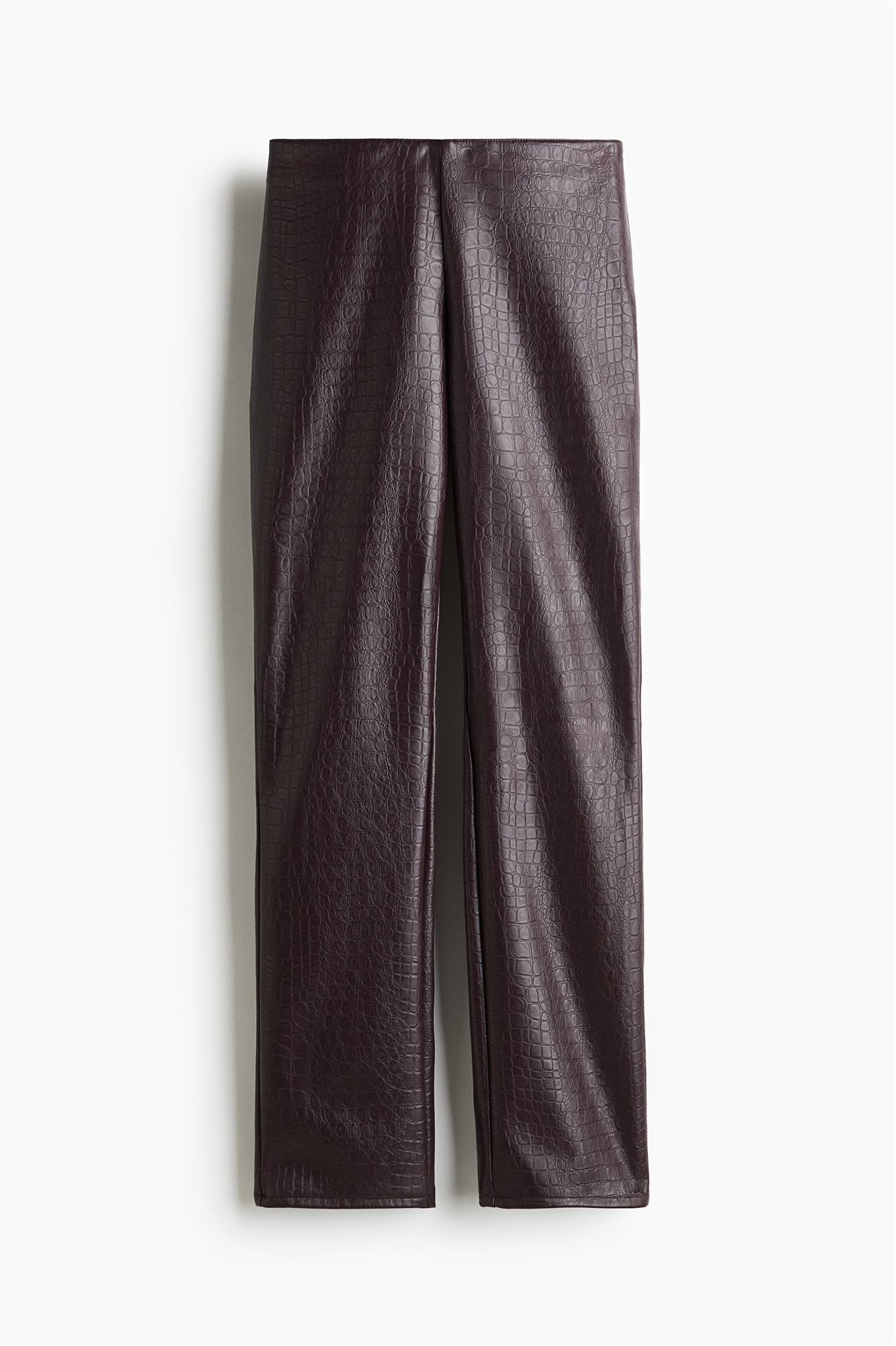 Брюки из ткани с покрытием, застежка на молнию и потайную пуговицу с одной стороны. Прямые ноги.