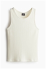 Майка из плотного трикотажа с широкими ребрами жесткости и прямым покроем. Зауженный крой, облегающий контуры тела и создающий приталенный силуэт.