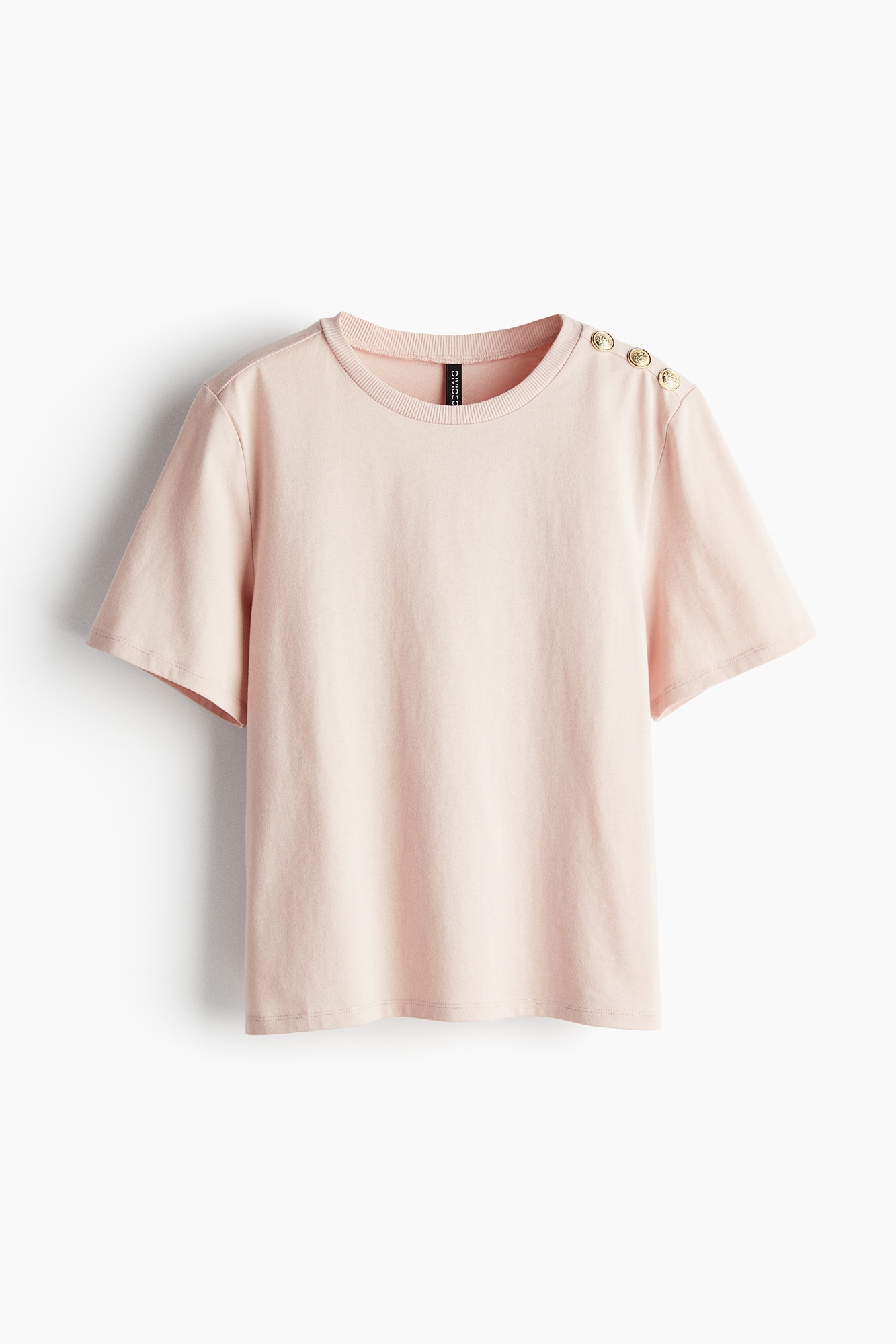 Футболка из мягкого хлопкового джерси с ребристой отделкой по вырезу горловины и декоративными металлическими пуговицами золотого цвета на одном плече.