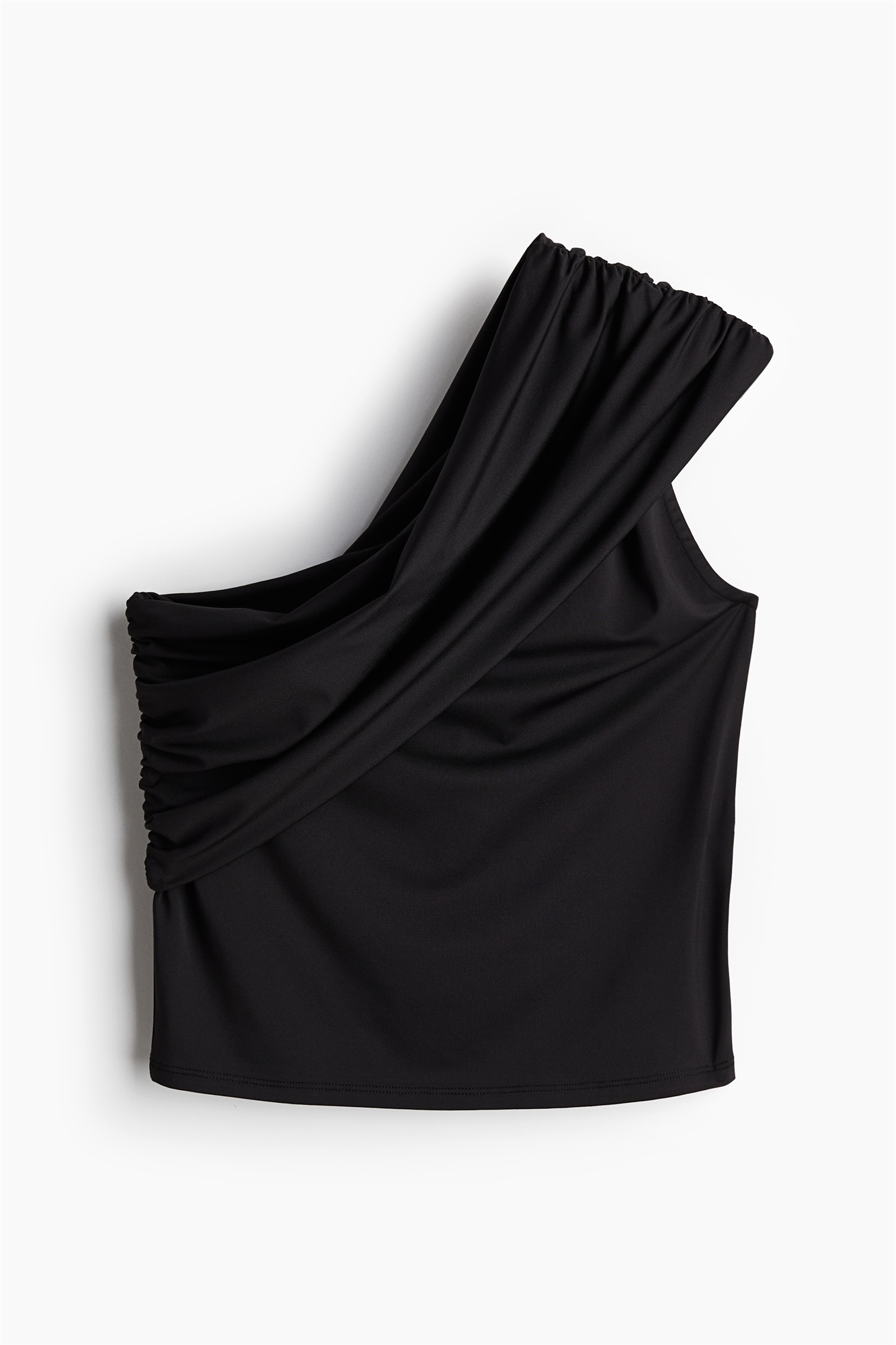 Короткий приталенный топ на одно плечо из стрейч-джерси с асимметричным вырезом, одной широкой бретелью и собранным в складку краем верха.