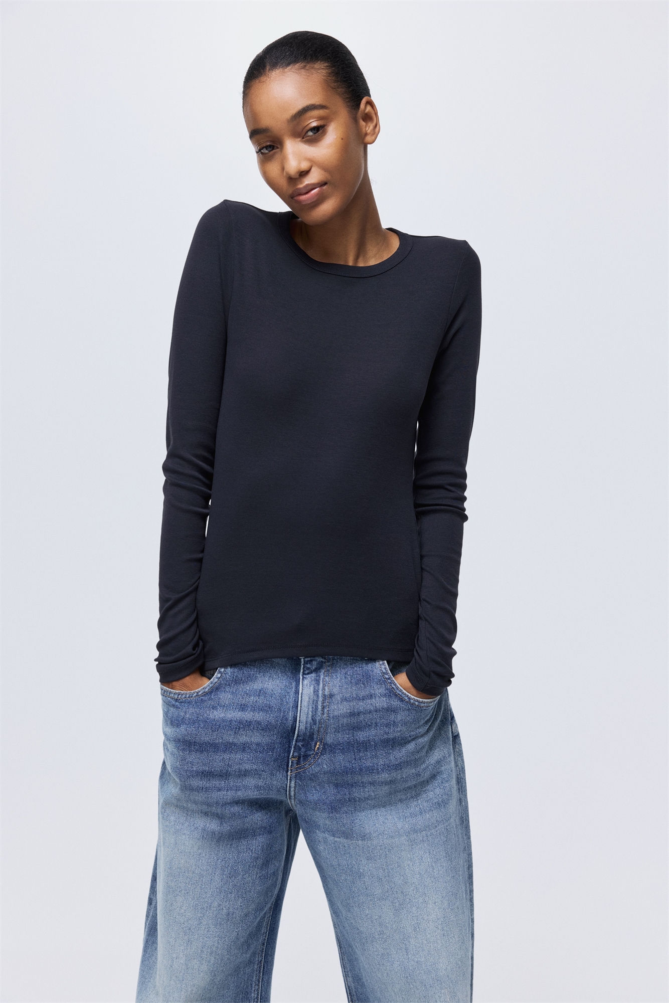 Облегающая футболка с длинными рукавами и круглым вырезом из хлопкового джерси.