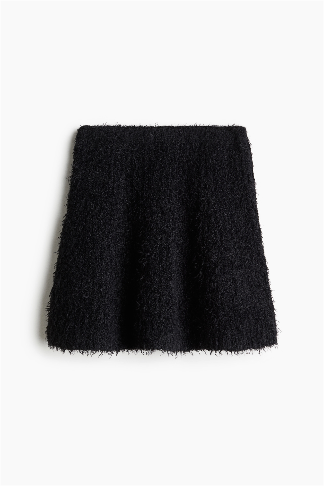 Короткая расклешенная юбка из мягкого пушистого трикотажа. Свободный крой со скрытой эластичной резинкой на талии и прямой подол.