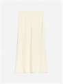 Юбка полной длины прямого покроя из полублестящей саржевой ткани с красивой драпировкой. Эластичный пояс и узкий подол с булавками внизу.